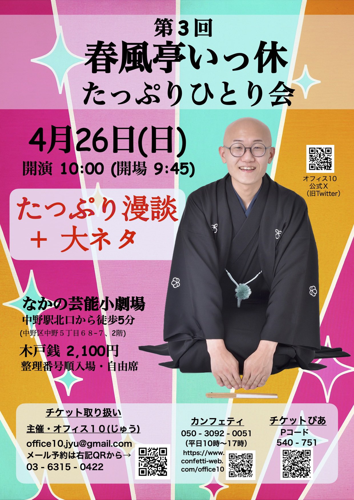 第3回 春風亭いっ休 たっぷりひとり会 たっぷり漫談+大ネタ(なかの芸能小劇場)をチケットぴあで今すぐチェック!
